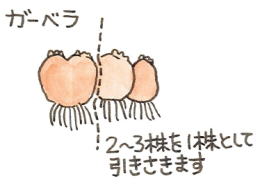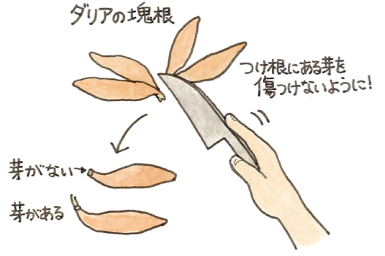 球根類は、花が終わった後の葉が球根を太らせる役目を負っています。翌年も球根が必要な場合は、花が枯れた後も枯らさないように水や肥料を与えしてください。 その後、葉が自然に枯れ始め、葉先が1/3ほど黄色くなってきたら球根を掘り上げます。掘り上げた球根は根の土を良く落として4〜5日陰干ししてから貯蔵してください。